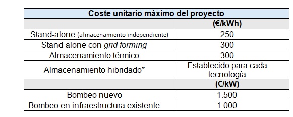 [Bajo estas líneas, a la derecha, tabla con los "costes subvencionables" (el Ministerio ha establecido un coste subvencionable máximo por unidad de almacenamiento)].
