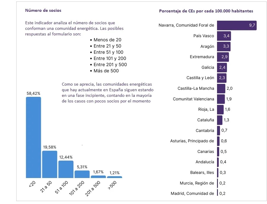 [Bajo estas líneas, tabla extraída del documento Observatorio de Comunidades Energéticas. Informe de Indicadores 2024, obra de Energía Común, iniciativa impulsada por la Fundación Ecología y Desarrollo (Ecodes) y la empresa Redeia (matriz de Red Eléctrica, REE), una iniciativa que cuenta con el apoyo del Ministerio para la Transición Ecológica y el Reto Demográfico y de la Asociación de Agencias Españolas de Gestión de la Energía (EnerAgen)].