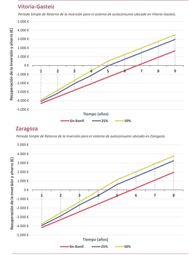 Pues bien, Vitoria es la localidad en la que la bonificación tiene un mayor impacto, puesto que el periodo simple de retorno de la inversión de la instalación puede reducirse hasta 1 año y 10 meses; mientras que, en Zaragoza, la amortización se reduce 1 año y 7 meses para la misma instalación y bonificación sobre el IBI. "Por lo tanto -concluye la Fundación-, donde menor irradiación solar existe, más necesarias son este tipo de bonificaciones para rebajar el periodo de retorno simple de la inversión".