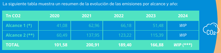 Para reafirmar su compromiso con la mejora continua en este ámbito, AGA ha diseñado un conjunto de líneas de actuación estratégicas que guiarán sus esfuerzos en materia de reducción de emisiones y optimización energética en el periodo 2023-2025. Este plan incluye acciones específicas como la incorporación de fuentes de energía renovables, para fomentar la disminución progresiva de nuestra huella de carbono, principalmente gracias a la instalación de la planta solar para el autoabastecimiento energético que se ha implementado en 2024. Con estas medidas, se espera que para el año 2026, AGA pueda reducir sus emisiones en un 32,8%.