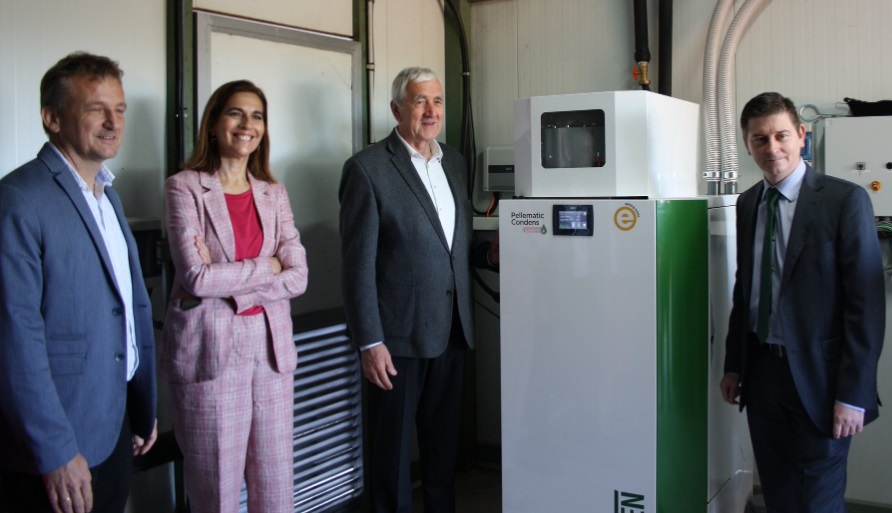 Al acto oficial de presentación de la caldera han acudido el director general de Industria, Energía y Minas de la Consejería de Transición Ecológica y Sostenibilidad, Samuel Ruíz Fernández; la directora de Cicytex, Carmen González Ramos; y el fundador de la empresa ÖkoFEN, Herbert Ortner.