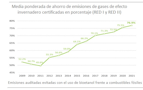 Según datos de ePURE, el nivel de reducción de emisiones de Gases de Efecto Invernadero (GEI) del etanol producido en la Unión Europea en comparación con la gasolina fósil ha alcanzado un nuevo máximo, el 76,9%. La asociación destaca en ese sentido que los nuevos datos confirman que "el bioetanol es la solución de reducción de GEI más rentable que tiene la UE".