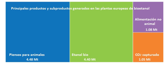 Según Bio-E, el 99,9% de la materia prima para producir etanol en Europa (maíz, trigo, azúcar) es cultivada por agricultores europeos, que reciben unas rentas que en otra situación habrían sido derivadas a terceros países productores de petróleo. Durante la obtención del etanol -recuerdan por otro lado en Bio-E- también se producen piensos para alimentación animal (DDGS Distiller’s Dried Grains Solubles): "estos piensos al estar aligerados de la carga energética (usada en el bioetanol) son muy proteicos, no aportan grasa al animal y proporcionan una carne saludable". Por fin -señalan desde la asociación española del bioetanol-, solo por pasar del E5 al E10 (cinco por ciento de etanol en gasolina a diez por ciento), el NOx (óxido de nitrógeno) se reduce en un 34%, las partículas en más de un 90% y los hidrocarburos en un 60% (el E10 se puede utilizar en aproximadamente el 90% de todos los automóviles de gasolina del parque actual). "Con E85 las mejoras serían mayores; cuanto más etanol se mezcle con gasolina, mayores serán los beneficios".