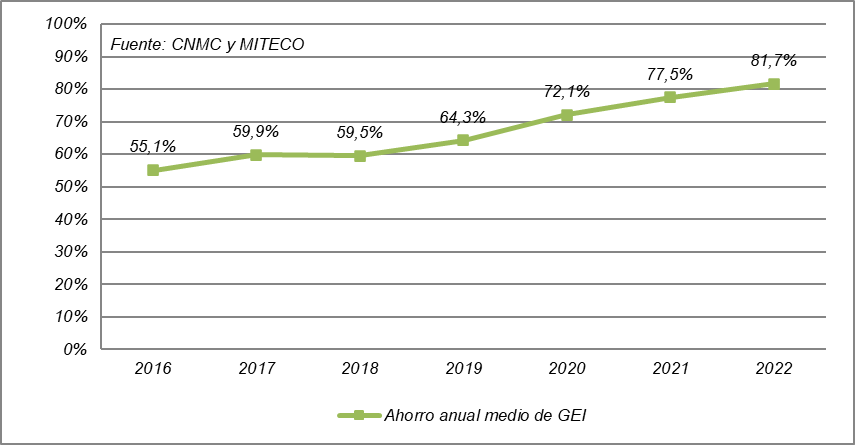 [Evolución del ahorro anual medio de GEI de los biocarburantes consumidos en España]