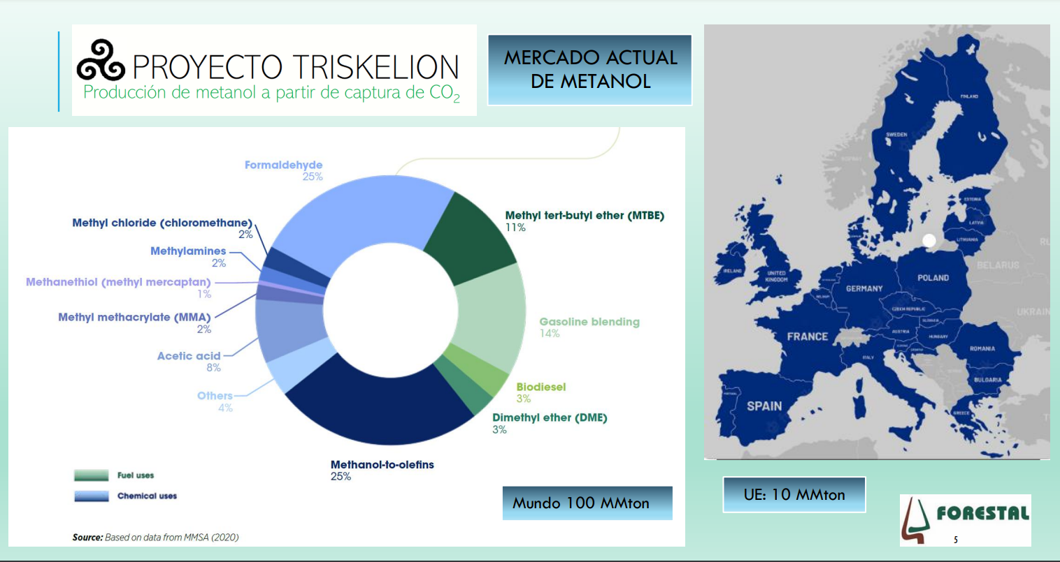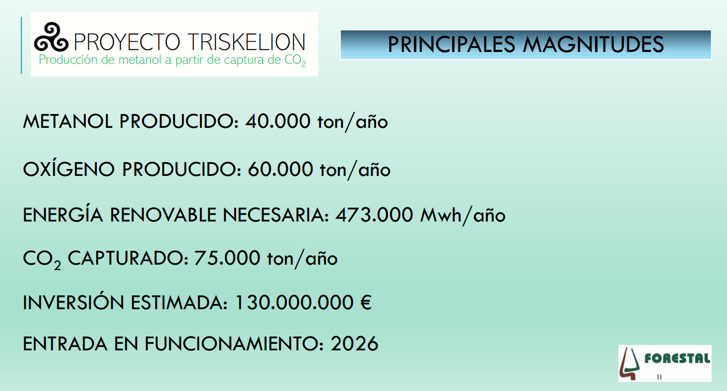 En su complejo fabril de la ría de Ferrol, Forestal del Atlántico dispone de los terrenos con la calificación adecuada, tanques de almacenamiento para Metanol e instalaciones logísticas para la carga de buques y de cisternas. Además, también tiene acceso a agua dulce y a las infraestructuras eléctricas necesarias, fortalecidas por la reciente inclusión en la planificación 2020-26 de Red Eléctrica de una nueva subestación en la zona para fortalecer la red de Ferrolterra y, por ende, de Triskelion.