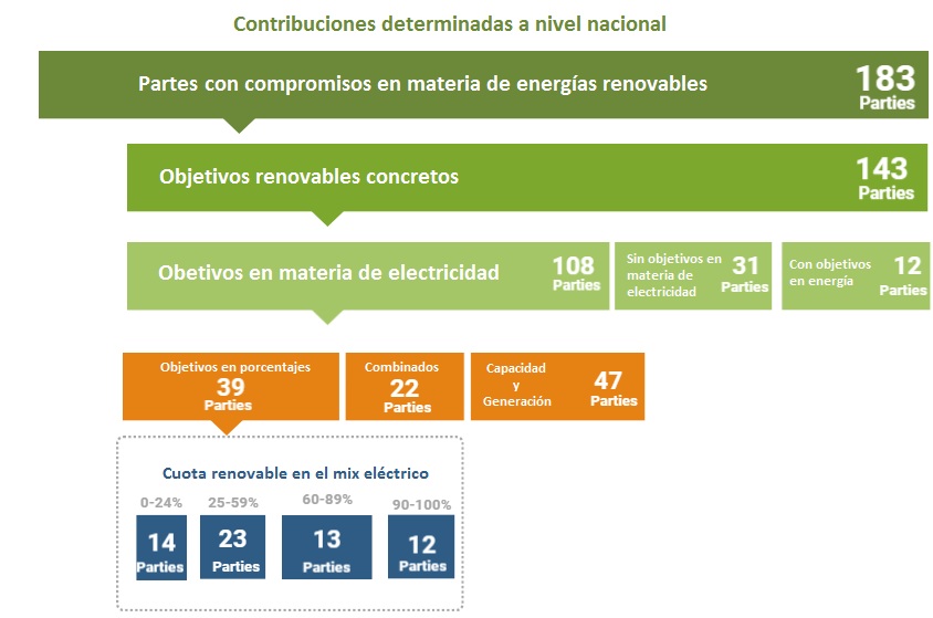 La Agencia Internacional de Energías Renovables (International Renewable Energy Agency, Irena) ha publicado hoy, en el marco de la vigésima séptima Conferencia de las Partes (Conference of Parties, CoP) de las Naciones Unidas sobre el Cambio Climático (CoP27) el documento Objetivos de energía renovable en 2022: una guía para el diseño, publicado. Irena evalúa en esa obra el grado de ambición en materia de energías renovables que se expresa en los compromisos y objetivos climáticos nacionales establecidos con respecto al objetivo climático global de limitar el ascenso de la temperatura a +1,5°C. Según el documento, el nivel colectivo de ambición de la transición energética hasta la fecha "no es suficiente pese al Pacto Climático de Glasgow para actualizar los objetivos de 2030 en los compromisos nacionales".