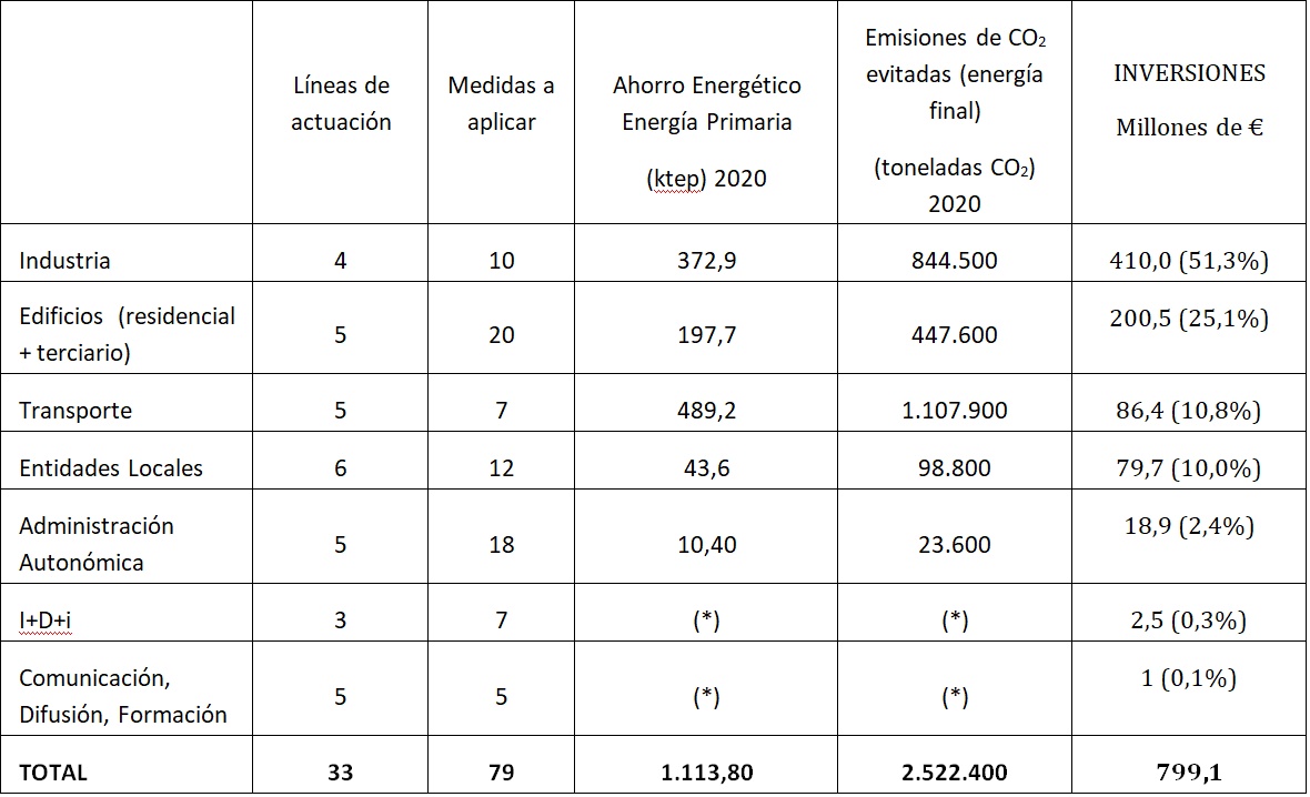 La Estrategia de Eficiencia Energética de Castilla y León 2020 fija los objetivos de ahorro energético y de reducción de emisiones de CO2 que se deben ir consiguiendo en los próximos años y propone siete áreas estratégicas (7), 33 líneas de actuación y 79 medidas a aplicar. Con su aplicación se conseguirá un ahorro de energía primaria de 1.113,80 kilotoneladas equivalentes de petróleo (ktep) y se evitará la emisión de 2.522.400 toneladas de CO2.