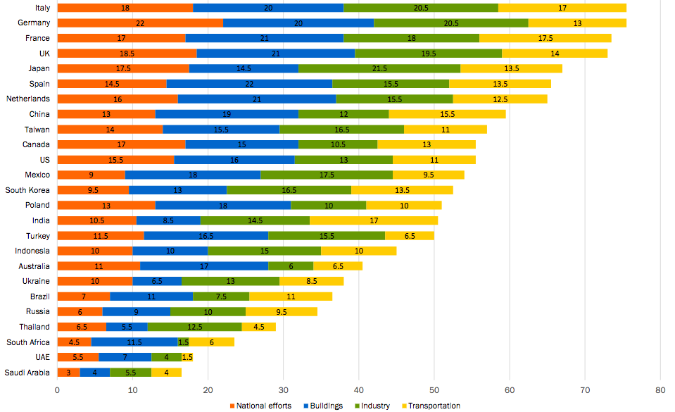 Algunos países logran mucho mejor que otros ahorrar energía, pero todos pueden hacer mucho más para ser más eficientes y cumplir sus objetivos climáticos relacionados con el Acuerdo de París, según el informe de ACEEE (The 2018 International Energy Efficiency Scorecard), publicado a finales de junio. De hecho, solo cuatro países en el mundo superan los 70 puntos de los 100 posibles.