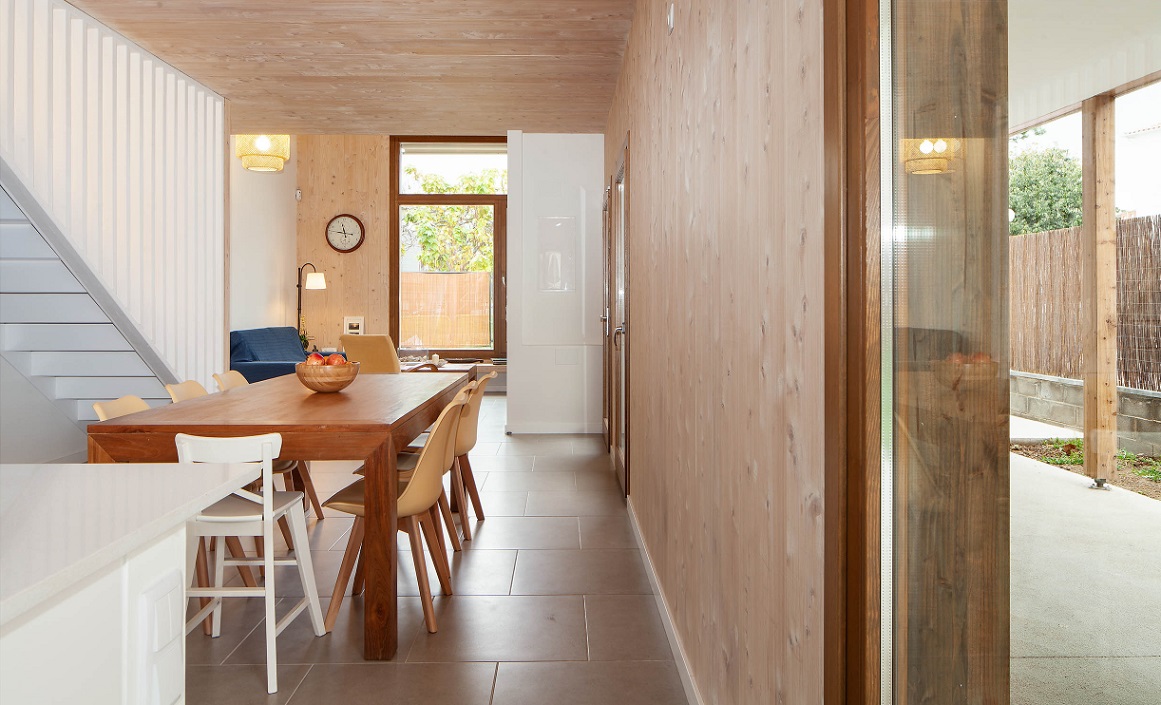 Según House Habitat, el sistema de construcción con paneles de madera contralaminados (CLT) aporta una serie de ventajas en entornos urbanos -como es el caso de Vilanova i la Geltrú- respecto a otros materiales convencionales. A saber: permite trabajar en seco, no causa molestias como ruido y polvo, y el plazo de ejecución se acorta no solo en relación a la obra tradicional, sino también respecto a otros sistemas de construcción en madera. "En este caso la estructura se completó en 4 días". El diseño de la vivienda es obra de Federico Pesl, del despacho Amomicasa, y Lucila Pérez-Elizalde. En el mismo se ha dado el mayor protagonismo posible de la madera CLT en el interior, que está a la vista en todos los forjados y la mayoría de las paredes.