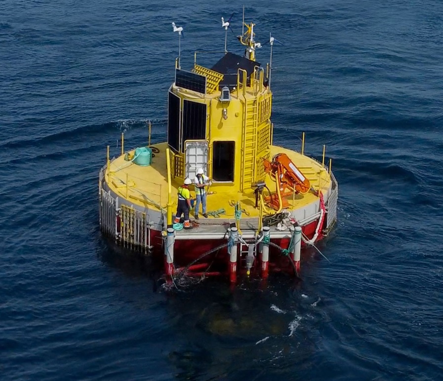 La tarde del jueves 21 se realizará la visita al BiMEP, la zona de ensayos en mar abierto con conexión a red para la demostración y validación de convertidores de energía de las olas y plataformas eólicas flotantes. En concreto, se visitarán los dispositivos DemoSath de Saitec (foto) y HashLab, de Tecnalia.