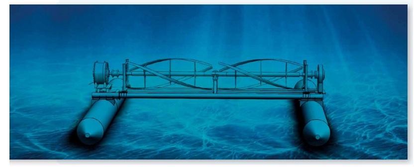 El Departamento de Energía de los Estados Unidos destina una partida de 35 millones de dólares (M$) a subvencionar 11 soluciones de generación de electricidad a partir de la energía hidrocinética contenida en las corrientes marinas y de los ríos. La californiana Aquantis, que está desarrollando una turbina submarina para aprovechamiento de la energía de las corrientes del mar, ha sido la mayor beneficiaria, con 4,5 M$ de subvención. El generador flotante BladeRunner Energy (para corrientes de los ríos) percibirá 3,3 M$. Sobre estas líneas, prototipo ORPC RivGen, de la empresa ORPC (Maine), que ha recibido una ayuda de 3,6 millones de dólares del Departamento de Energía de los Estados Unidos para desarrollar un prototipo nuevo basado en este, que aprovecha la energía de las corrientes de los ríos.
