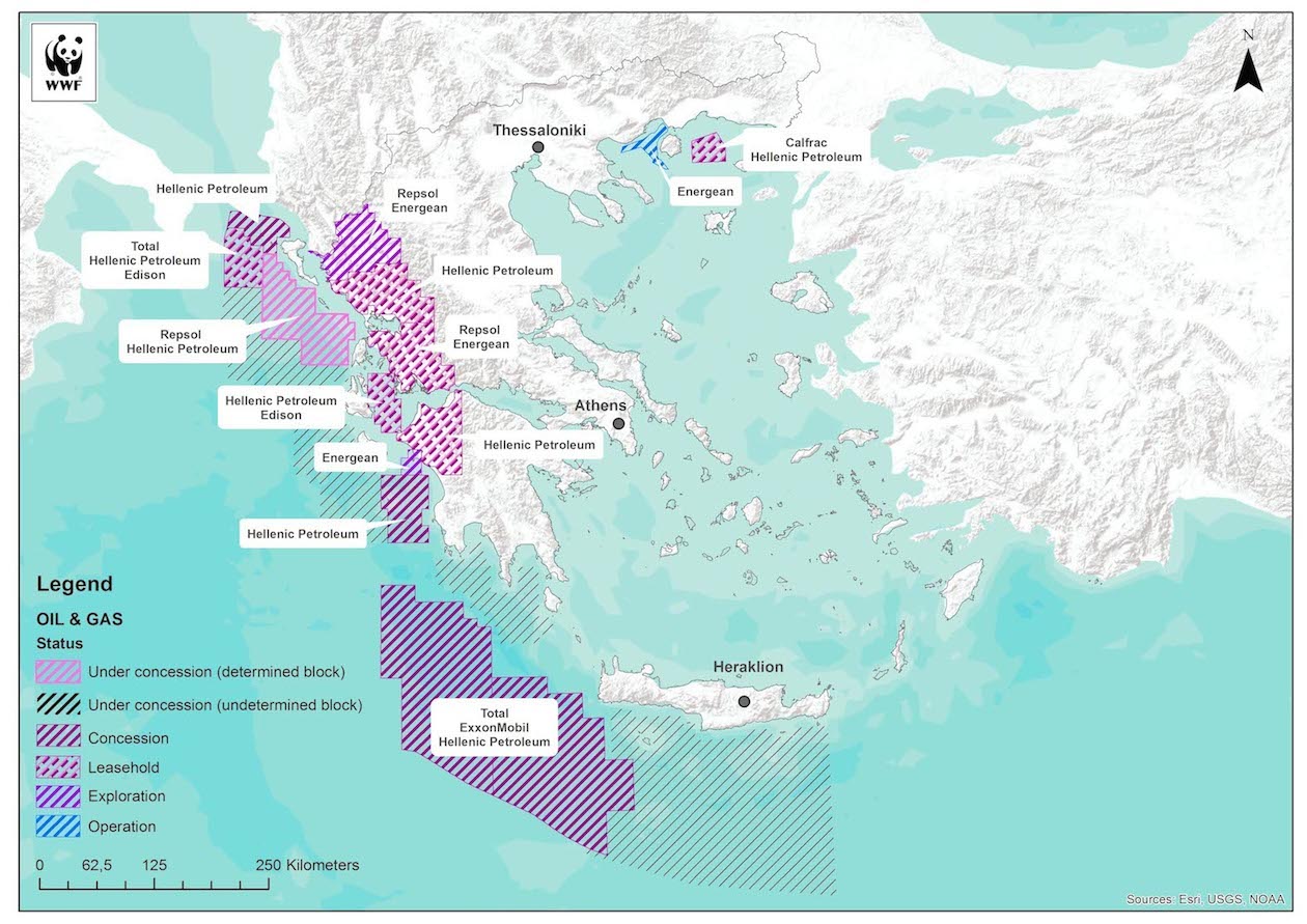 El área afectada en aguas griegas para la búsqueda y explotación de hidrocarburos es de unos 56.000 km2 de superficie, la cual se extiende desde el norte de Corfú hasta el sur de Creta y se solapa con casi toda la parte este y sur de la Fosa Helénica, un punto caliente de biodiversidad marina de importancia ecológica mundial. El gobierno griego tiene actualmente en marcha una serie de procedimientos de concesión de licencias a diversas compañías para las operaciones de exploración y explotación de perforación de petróleo y gas en esta zona. Las islas Jónicas, Creta y las zonas de Grecia Occidental donde Repsol planea buscar y explotar hidrocarburos, no solo son un importante destino turístico, sino también un excepcional activo natural de importancia europea y mundial, que no puede ponerse en riesgo a causa de la hipocresía climática de Repsol y otras compañías petroleras que también están activas en la zona.