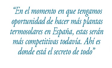 Nos gustaría pensar que sí, pero es cierto que a seis años vista va a ser difícil. Lo importante es poder tener una primera subasta bien diseñada, porque nos va a hacer todavía más competitivos. Al final esto son economías de escala. ¿Por qué la eólica y la fotovoltaica han ganado competitividad? Porque se han ido implantando cada vez más proyectos. Pues nosotros anunciamos lo mismo: en el momento en que tengamos oportunidad de hacer más plantas termosolares en España, estas serán más competitivas todavía. Ahí es donde está el secreto de todo. Insisto en todo caso en un asunto: no podemos ni debemos comparar el precio de un megavatio hora eólico o fotovoltaico con el de uno termosolar. Las dos primeras tecnologías tienen solo ese cometido: generar energía renovable. La termosolar presta además otros servicios, que también de ben ser valorados.