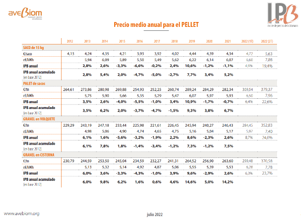 A principio de año ya hay un incremento del precio por el incremento de la demanda. Como las demás energías fósiles estaban subiendo mucho, la gente ha optado por la biomasa. El precio en fábrica ha subido un 70%, no ha llegado al doble, y ya parece que la curva se está aplanando. Desde Avebiom hacemos un índice cada mes y vemos que sigue subiendo, pero menos. Esto repercute en el precio del usuario.