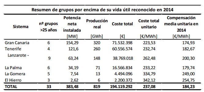 Pues bien, según el informe que acaba de publicar la CNMC, en la actualidad existen 33 grupos térmicos en Canarias con una potencia conjunta de 383 megavatios (MW) que se encuentran en operación a pesar de haber cumplido los 25 años de vida útil regulatoria. El año pasado, el coste total de estos grupos (lo que cobraron por todos los megavatios hora que generaron) ascendió a 194 millones de euros. Habida cuenta de todo ello, el informe de la CNMC asegura que, "suponiendo que, gracias a la modificación de la Orden, al menos una parte de los mencionados grupos envejecidos pudiera ser sustituida por grupos eólicos (sin perjuicio del necesario mantenimiento de determinados grupos, o la sustitución por otros capaces de aportar la necesaria garantía de potencia) hasta agotar los 450 MW previstos, se conseguirían cuantiosos ahorros en la explotación".