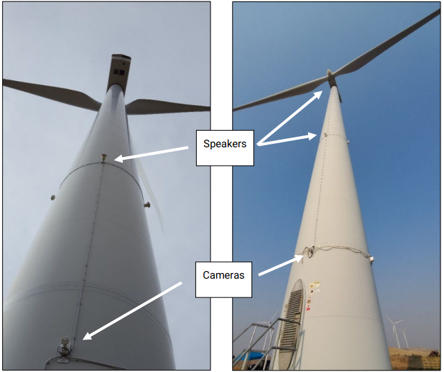 Un conjunto de cámaras HD inspeccionan 360 grados alrededor del aerogenerador durante el día y otro grupo de cámaras térmicas vigilan por la noche las áreas monitoreadas alrededor del molino. Las aves detectadas en tiempo real son registradas y se almacenan videos y datos con esta información. El diseño de la instalación y los ajustes operativos se personalizan en función de la especie objetivo y dimensiones del aerogenerador. Gracias a esta información, las colisiones accidentales se pueden verificar en vídeos con sonido a través de una plataforma de análisis de datos online que permite revisar los vuelos de las aves, datos ambientales y parámetros operativos de los aerogeneradores.