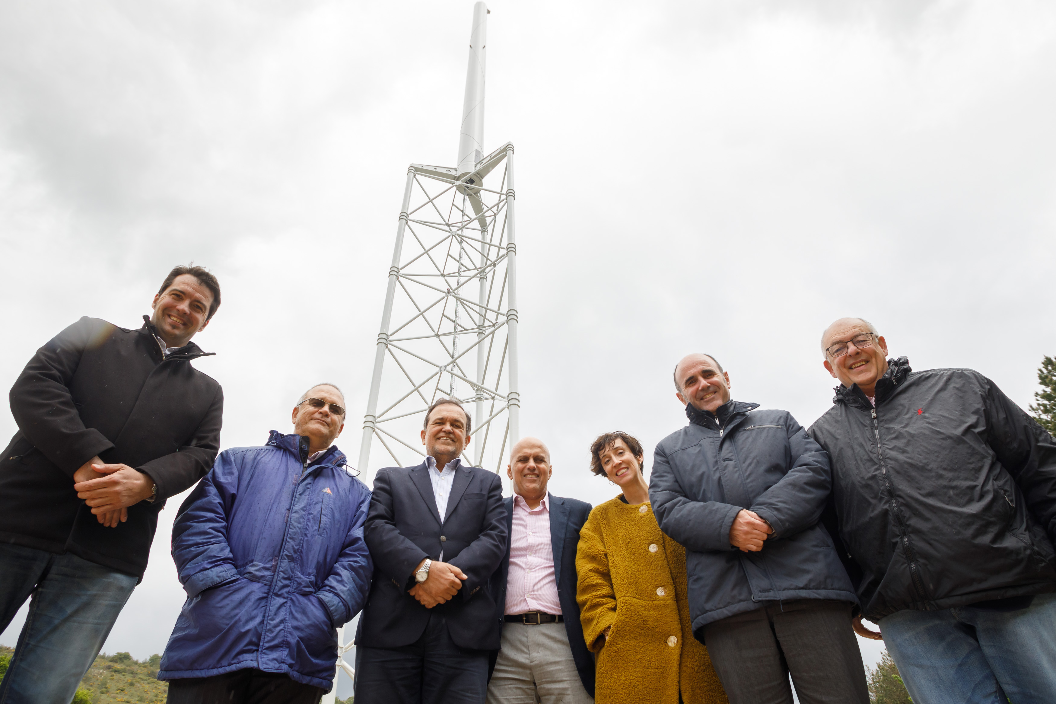 Eneko Sanz, director general de Nabrawind; Gesil Sampaio Amarante, jefe de gabinete de la Secretaría de Ciencia, Tecnología e Innovación del Estado de Bahía (Brasil); Walter de Freitas Pinheiro, secretario de Planificación del Estado de Bahía; Paulo Roberto Britto, superintendente de la Secretaría de Desarrollo Económico del Estado de Bahía; Arantxa Esparza, jefa de Proyectos y directora de Cuentas; Manu Ayerdi; y Hely Ricardo Savio, director técnico de Tecnologías.