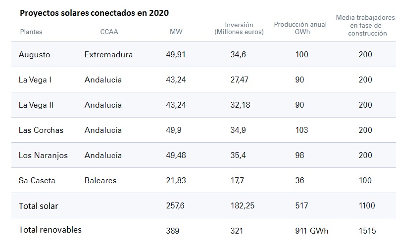 Los proyectos ejecutados por la empresa italiana (Endesa es propiedad de Enel) han quedado repartidos por Aragón, Andalucía, Extremadura, Castilla-La Mancha y Baleares y están llamados a producir cada año -según las estimaciones de la compañía- más de novecientos gigavatios hora de electricidad (911 GWh). Además, Endesa calcula que, conjuntamente, evitarán la emisión a la atmósfera de más de 424.228 toneladas de CO2 al año. Todas las instalaciones -informa la empresa- se han construido "en un tiempo récord, teniendo en cuenta el parón que se produjo en España en la actividad empresarial tras el decreto del Estado de Alarma por la pandemia de la Covid19 entre marzo y junio". Los doce parques (6 solares y 6 eólicos) son hitos en la ruta que ha emprendido la compañía (Plan Estratégico 2021-2023) hacia la sustitución de su capacidad de generación térmica (carbón) por renovables. Las obras desarrolladas por la compañía en el año del Covid han sostenido "una media estimada de más de 1.500 empleos directos".