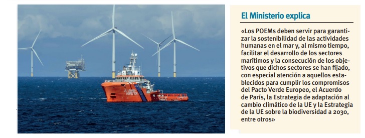 Los Planes de Ordenación del Espacio Marítimo identifican un conjunto de Zonas de Uso Prioritario (ZUP) para actividades de interés general (la eólica marina no es conceptuada como tal) y otras Zonas de Alto Potencial (ZAP), donde priman las actividades sectoriales que requieren ocupación específica y su potencial uso en tiempos futuros (ahí cabría la eólica marina).