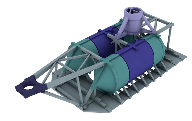 La tecnología SATH (Swinging Around Twin Hull) consiste en una barcaza de doble casco tipo catamarán constituida por dos flotadores cilíndricos de hormigón modular prefabricado arriostrados entre sí y a unas placas sumergidas del mismo material. Se caracteriza por contar con un único punto de amarre (single point mooring), que le permite alinearse con la dirección del viento para aprovechar al máximo el recurso eólico. Este proyecto ha sido objeto de ayuda con cargo al presupuesto de gastos del Departamento de Desarrollo Económico e Infraestructuras del Gobierno Vasco y al Fondo Europeo de Desarrollo Regional (Feder). [Bajo estas líneas, el emplazamiento en el que se encuentran ahora los dos flotadores de hormigón de DemoSATH].