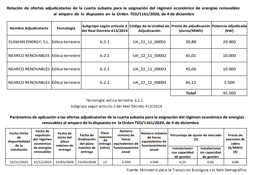 [Bajo estas líneas, los resultados de la subasta de ayer. Fuente: Ministerio para la Transición Ecológica y el Reto Demográfico]