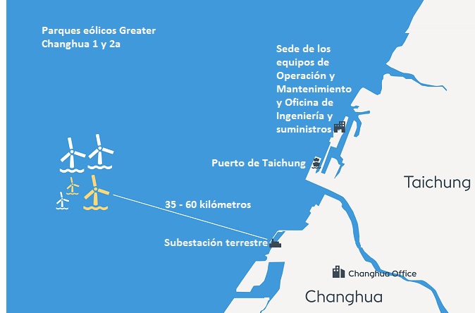La compañía danesa se adjudicó en junio de 2018 la instalación de los 920 megavatios de Greater Changhua 2b y 4 y ha firmado (en julio de 2020) un acuerdo bilateral de compraventa de electricidad con la compañía local Taiwan Semiconductor Manufacturing Company Limited (TSMC). El complejo eólico marino Greater Changhua 2b y 4 estará operativo en 2025 y completamente conectado en 2026 (todo ello en todo caso está sujeto -matizan desde la compañía- a la decisión final de inversión por parte de la empresa y la disponibilidad de la red).