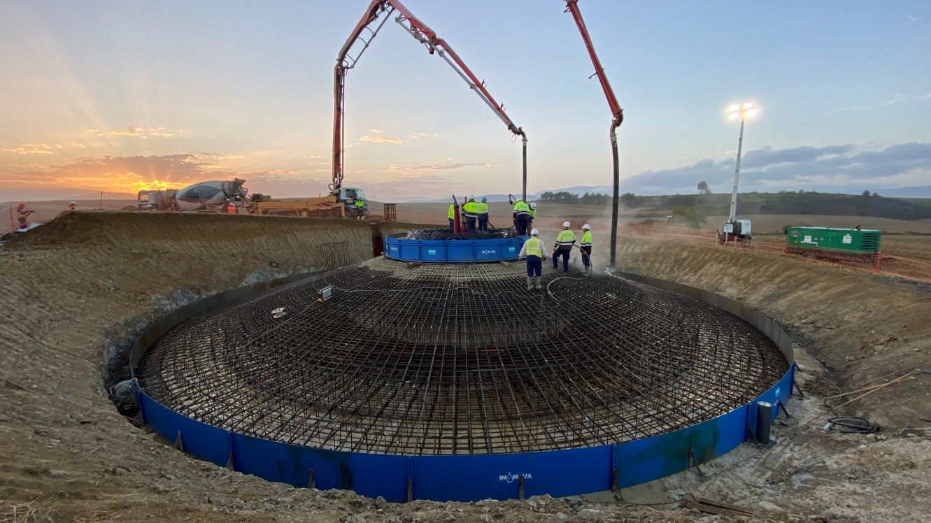 Nueve turbinas marca Nordex, de 4,53 megavatios (y con un diámetro de rotor de 149 metros cada una) para cuya cimentación RWE ha empleado la solución Soft-Spot. Los cimientos Soft-Spot -explica en una nota la compañía- se extienden en hormigón armado y se colocan sobre una capa de aislamiento de poliestireno expandido (EPS, por sus siglas en inglés). "Esto significa que las cargas, en lugar de transferirse al subsuelo, son redistribuidas por el EPS a una superficie redondeada, con forma de anilla". Como resultado -continúa la empresa-, se mejora la estabilidad del aerogenerador a la vez que se reducen el diámetro de las zapatas de cimentación y el volumen de hormigón utilizado, "por lo que se optimiza el consumo de hormigón y acero, haciendo que el proyecto sea más rentable y medioambientalmente sostenible".