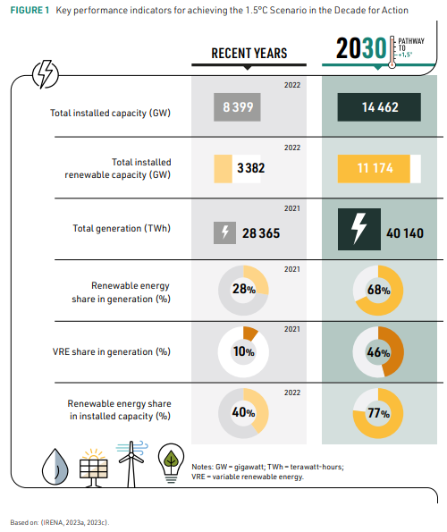 Por último, el informe, que se basa ampliamente en el análisis presentado en Perspectivas de las transiciones energéticas en el mundo 2023 de Irena: trayectoria de 1,5°C, divide los factores clave en cinco secciones: