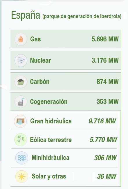 Iberdrola, compañía multinacional que produce, distribuye y comercializa electricidad, declara 34.000 empleados en todo el mundo. Los principales accionistas de esta empresa son el fondo soberano de Catar (Qatar Investment Authority), el fondo estadounidense Black Rock Inc y el banco público noruego Norges Bank. La compañía asegura suministra energía a cerca de 100 millones de personas, principalmente en España, Reino Unido (ScottishPower), Estados Unidos (Avangrid), Brasil (Neoenergia) y México. Iberdrola presume de ser "el primer productor eólico y una de las mayores compañías eléctricas por capitalización bursátil del mundo". La compañía ha declarado una facturación (en 2018) de 35.075,9 millones de euros, un beneficio neto de 3.014 millones de euros y unos activos superiores a 113.000 millones de euros. Este es su parque global de generación de electricidad.