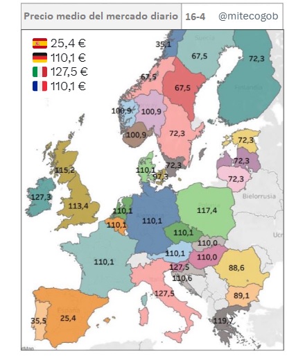 Bajo estas líneas, precio medio de la electricidad en marzo en los mercados mayoristas europeos. Fuente: Ministerio para la Transición Ecológica y el Reto Demográfico