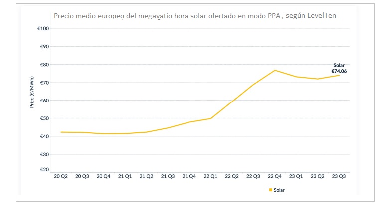 Los autores del informe PPA Price Index (Q3 2023) lo explican así: "durante este periodo los precios de los PPAs eólicos y solares (percentil 25 o P25) de LevelTen aumentaron un modesto 2% en toda Europa; y, aunque existe una amplia variabilidad entre los mercados y las tecnologías, en general los precios parecen ser más estables en 2023 que en 2022, que vio aumentos dramáticos tras la guerra en Ucrania". A favor de esa relativa estabilidad han jugado la vuelta de los precios del gas a niveles "de nueva normalidad" y la estabilización de la cadena de suministro; en contra, han operado los dos factores susodichos: la nuclear francesa y la escasez de mano de obra.