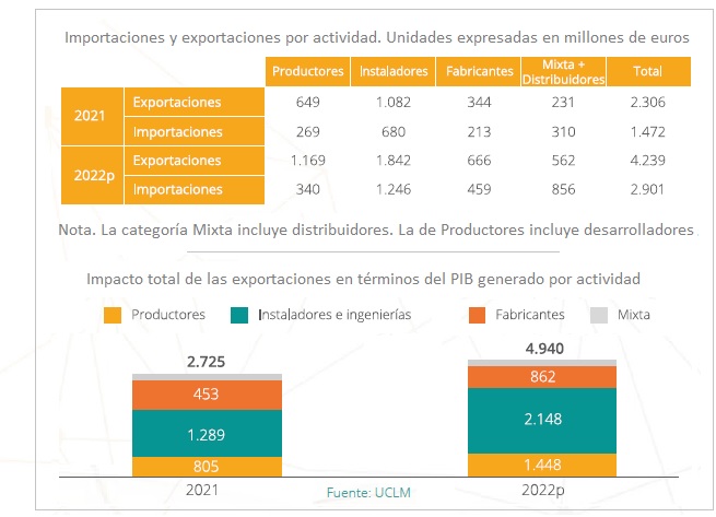 Por contra, el sector FV nacional exporta más que importa. Los autores del Informe Anual UNEF –un equipo de economistas de la Universidad de Castilla La Mancha– han hecho las cuentas y estas han arrojado un dato llamativo: el valor de las exportaciones es mucho mayor que el valor de lo importado. Ya lo era en 2021, pero es que las exportaciones han aumentado en el 22 (el año que revisa el informe). “Los datos de 2022 –explican– confirman la tendencia” (el incremento ha sido de 1.933 millones de euros).