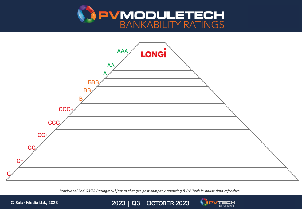 El informe de bancabilidad de PV ModuleTech abarca una serie de indicadores que incluyen métricas financieras clave, volúmenes anuales de envío y presencia geográfica, así como puntuaciones de bancabilidad, salud financiera y capacidades de fabricación, todos ellos datos considerados cruciales para los inversores y las partes interesadas que buscan tomar decisiones informadas para sus proyectos. La empresa asegura que "esta calificación AAA también atestigua la solidez financiera de LONGi y el cumplimiento de los requisitos financieros más estrictos para su estabilidad a largo plazo". Asimismo, aseguran que la compañía "experimentó una sólida primera mitad de 2023" y que el segundo trimestre de este año había sido "el mejor de la historia de la empresa, con un beneficio neto de más de 700 millones de euros".