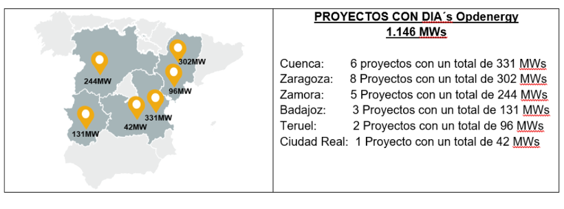 Opdenergy, productor independiente de energía renovable, ha obtenido el 100% de las Declaraciones de Impacto Ambiental positivas para todos sus proyectos en fase de construcción y de pre-construcción localizados en España, concretamente en las provincias de Zamora, Ciudad Real, Zaragoza, Cuenca, Teruel y Badajoz. Todos estos proyectos suman un total de 1.146MW, de los cuales 902MW corresponden a proyectos en fase de construcción y 244MW en proyectos que se encuentran en una etapa de pre-construcción. Además, todos los equipos principales necesarios para la construcción de estos proyectos se encuentran ya contratados, según informa la compañía.