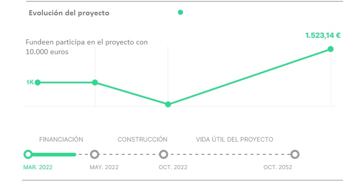 Los interesados en invertir en este proyecto podrán hacerlo a través de Fundeen, plataforma de financiación participativa, que presume de ser "referente en inversión de proyectos de energía renovable en España", que cuenta con la autorización de la Comisión Nacional del Mercado de Valores (CNMV) y que está adherida a los Principios de Inversión Responsable de la ONU. Fundeen cuenta con más de 10.000 usuarios registrados (personas interesadas en invertir en este tipo de proyectos) y ha gestionado inversiones en proyectos de energías renovables por un valor superior a los 4,7 millones de euros.