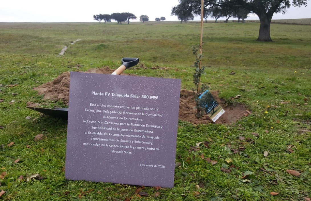 Todos los números de Talayuela Solar son formidables. El campo solar ocupará una extensión de más de 800 hectáreas; la instalación estará integrada por 830.000 módulos y contará con casi 10.000 seguidores solares a un eje (Soltec SF7); la obra va a emplear hasta 400 personas en el pico máximo del proyecto, que ha desarrollado y ejecutará Solarcentury (la empresa ha suscrito por cierto un convenio de empleo con el Ayuntamiento de Talayuela a través del cual "se priorizará a las empresas locales y se emplearan a más de 100 personas de Talayuela durante el año completo de la construcción")... Y, por fin, la "inversión directa", que también es formidable: 225 millones de euros que van a repercutir "muy favorablemente" -explican desde Solarcentury- en la economía de Extremadura y "no solo como fuente de creación de empleo directo, sino también por el efecto en el PIB extremeño, vía impacto fiscal, y por los puestos de trabajo indirectos (proveedores) e inducidos (los que surjan de una mejora de la actividad económica)". Solarcentury estima que, en resumen, "el total de empleos directos, indirectos e inducidos, surgidos de la revitalización económica que se genere en la zona, podría alcanzar los 1.000 puestos de trabajo". Con el acto de hoy, Solarcentury da por oficialmente iniciada la obra, pero lo cierto es que los trabajos de conexión del proyecto a la red ya se encuentran completados, así como aprobados todos los permisos necesarios para empezar a trabajar in situ. La empresa estima que la obra concluirá en el segundo semestre de 2020 y calcula que la producción del campo FV (que tendrá una potencia de trescientos megavatios, 300 MW) equivaldrá a la demanda de unos 150.000 hogares durante un año.