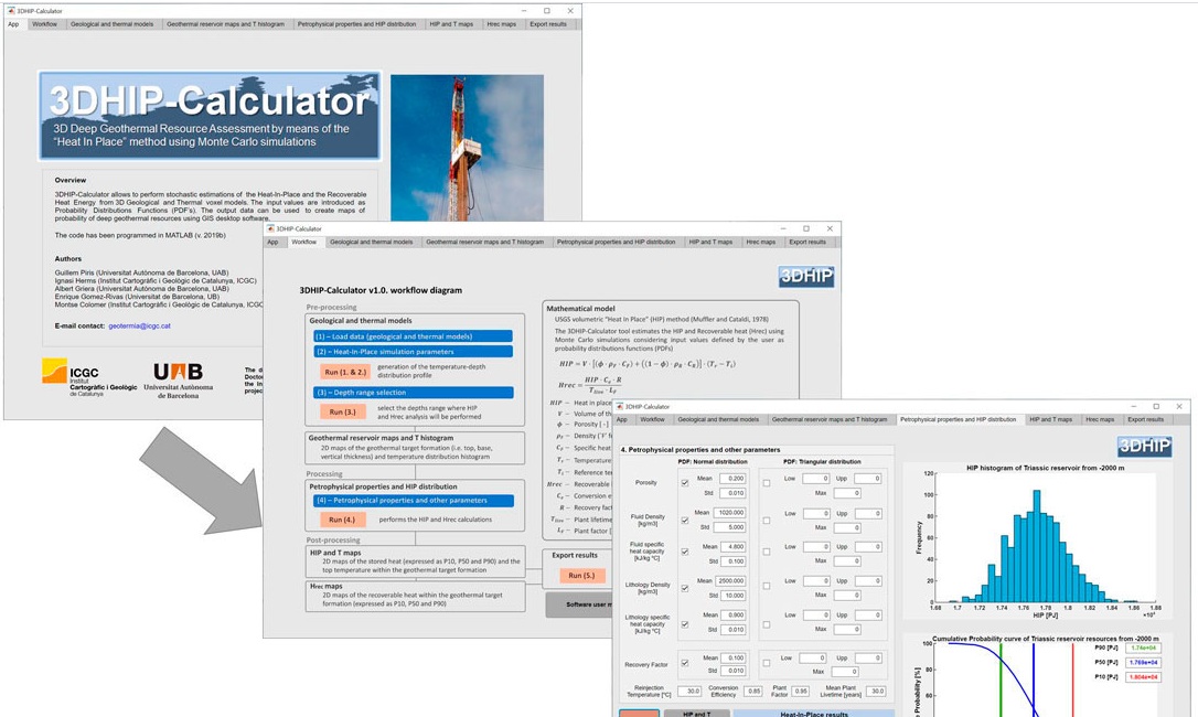 El nuevo programa facilita la evaluación del potencial geotérmico profundo mediante el cálculo del método volumétrico USGS Heat-in-Place (HIP) (Muffler y Cataldi, 1978; Garg y Combs, 2015) y la energía térmica recuperable (Arkan y Parlaktuna, 2005; Trumpy, et al. 2016; Limberger et al. 2018) directamente sobre modelos geológicos 3D utilizando un enfoque probabilístico o estocástico.