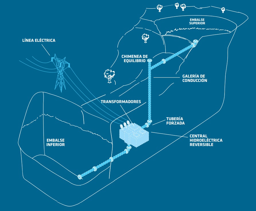 [Bajo estas líneas, infografía sobre la central hidroeléctrica de bombeo reversible de Salto de Chira].