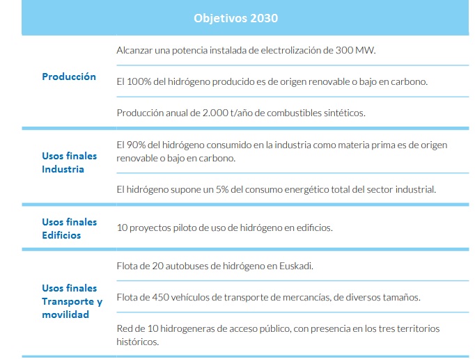 «Los objetivos fijados incluyen toda la cadena de producción hasta los diferentes usos finales (producción, almacenamiento, transporte y distribución), lo que supone una concepción holística de este elemento para su integración con los objetivos de la Estrategia Energética de Euskadi»