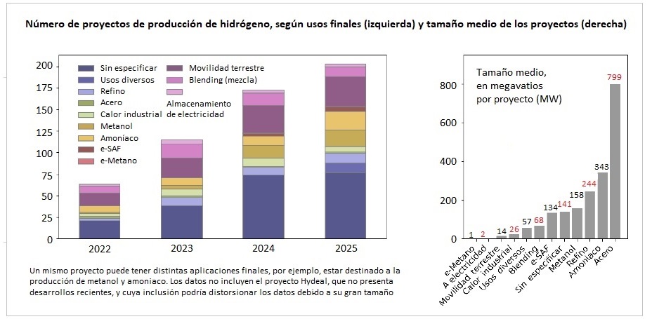 Otro apunte recogido en el Informe es que "la mayoría de los contratos en firme para la compra de hidrógeno firmados en los últimos 5 años, se destinaron a fabricar productos derivados, en vez de usar el hidrógeno directamente como producto final".