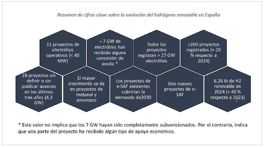 El informe analiza por otro lado cómo el uso de electricidad de red puede ampliar las horas de operación de las plantas electrolíticas, aunque parte de la producción se clasificaría como hidrógeno bajo en carbono (porque no toda la electricidad que suministra la red es renovable). Los autores del estudio destacan en todo caso la "tendencia hacia proyectos integrados en territorios con alta concentración de renovables e industria, como Aragón, Castilla-La Mancha y Andalucía".