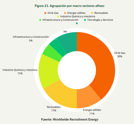 Uno de los datos más elocuentes es que el sector petrolero se erige como el principal impulsor de empleo, aportando el 39% de los nuevos puestos, a pesar de que solo el 16% de los encuestados provienen de esta industria. Se trata de toda una "migración de talento que redefine el juego laboral", señalan los autores del informe. (Ver gráfico adjunto)