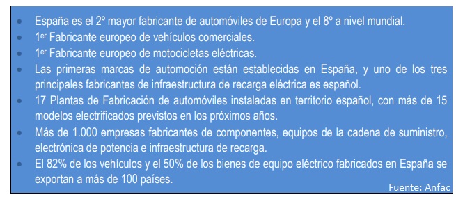 En el marco de la puesta en marcha de este Plan, la industria española de automoción reconoce ciertos "compromisos". En concreto, el sector de fabricantes de vehículos y de componentes se ha fijado como objetivo avanzar en la descarbonización del parque de vehículos y en la atracción de nuevos modelos eléctricos y electrificados para su fabricación en España. Para ello, priorizará sus esfuerzos de inversión de modo que en 2030 se alcance al menos una producción anual de entre 700.000 y 800.000 vehículos electrificados (eléctrico puro y enchufable) y los componentes necesarios, "lo que permitirá mantener la cuota anual del 12% de penetración en el mercado europeo". La industria española fabricó más de dos millones y medio de vehículos en 2019.