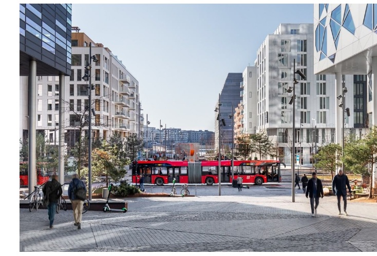 La empresa Unibuss AS, uno de los mayores operadores noruegos de transporte, ha contratado a Solaris para que le suministre hasta 183 autobuses eléctricos articulados Urbino 18 de cuarta generación (el modelo fue lanzado al mercado en el año 2017 y hoy da servicio en una gran cantidad de ciudades europeas, como Bruselas, Berlín, Barcelona, Varsovia, Cracovia, Poznan o Hamburgo). Entre otras características -informa CAF-, este vehículo puede operar hasta 24 horas al día "en función del equipamiento elegido y la infraestructura". Los autobuses que circularán por las calles de Oslo estarán equipados con baterías High Energy con una capacidad total de más de 500 kWh, pudiendo ser recargados mediante un cargador de enchufe. Los autobuses Urbino cuentan con cargadores USB, luces ambientales especiales, rampas dobles para personas con discapacidad y "filtros reforzados especiales en el sistema de aire acondicionado para ofrecer una mayor protección a los pasajeros". Además -explican desde CAF-, los autobuses eléctricos de Oslo estarán equipados "con un gran número de sistemas que incrementarán la seguridad en la operación, dotando a los vehículos de las últimas tecnologías, que advertirán a los conductores de la presencia de ciclistas y peatones en las inmediaciones del vehículo, así como facilitarán las maniobras en calles estrechas o en el depósito". Bajo estas líneas, un Urbino 18 por las calles de Oslo [Foto: CAF].
