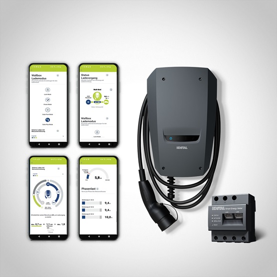 La potencia de carga inicial y el excedente mínimo de la potencia solar pueden determinarse individualmente. Si el excedente aumenta, el consumo de red se sustituye y se aumenta hasta el exceso de potencia.