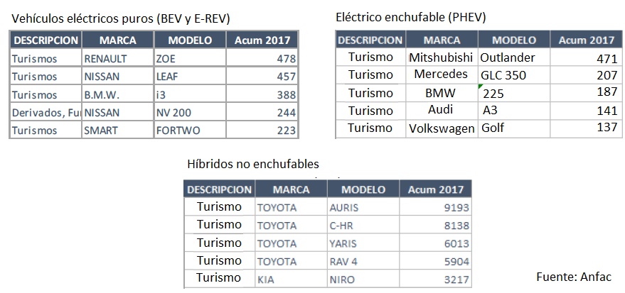 Según el último balance trimestral de la Asociación Nacional de Fabricantes de Automóviles y Camiones (Anfac), "el mes de septiembre ha sido positivo para el mercado de vehículos eléctricos". Los españoles matriculamos durante esos treinta días 958 unidades eléctricas, "lo que supuso un incremento del 180,1% en comparación con el mismo mes del año 2016". Casi el 90% de los vehículos eléctricos matriculados fueron turismos. La Asociación considera que "el estímulo del Plan Movea -que gestiona el Gobierno- está detrás del notable impulso en las matriculaciones, agotándose los fondos destinados a estos vehículos en muy poco tiempo". Según los datos de Anfac, en los nueve primeros meses del año, España matriculó un total de 5.342 vehículos eléctricos, "con un crecimiento del 62,7% en comparación con el mismo periodo de 2016". Por su parte, el mercado de vehículos con tecnología híbrida ha crecido en el mes de septiembre un 61,2% y ha alcanzado un total de 4.202 unidades registradas.