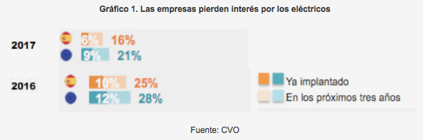 Otra de las conclusiones que revela el CVO es el freno en la tendencia de la conducción compartida entre las empresas. De esta forma, sólo el 17% de las compañías, frente al 27% del año pasado, considera el casharing como solución de movilidad, lo que evidencia que todavía no han interiorizado lo suficiente la economía colaborativa en su modelo de negocio.