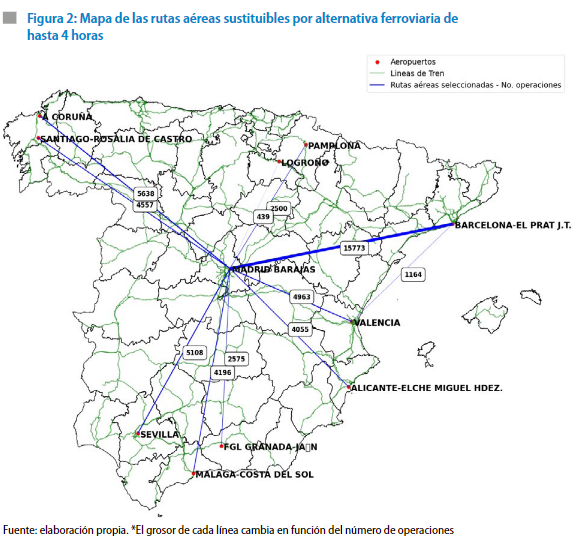 Los datos en cuanto a preferencia del viajero por el tren frente al avión donde existe una alternativa son claros. Según la Comisión Nacional de los Mercados y la Competencia (CNMC), en 2022 la cuota de mercado en los principales corredores donde tren y avión compiten fue claramente favorable al primero: 78,3% entre Madrid y Barcelona; 78% entre Madrid y Málaga; 81,5% entre Madrid y Alicante; 85,4% entre Madrid y Sevilla; y 89,9% entre Madrid y Valencia. Además, asumiendo que el 100 % de la demanda de estos viajes aéreos se trasladara al tren, el ahorro neto de emisiones se situaría en 306.125 toneladas de CO2 o, lo que es lo mismo, una reducción de entre el 30 % y el 40 % de las emisiones de todo el tráfico aéreo peninsular (389.700 toneladas de CO2 en 2019 en emisiones de las operaciones aéreas prescindibles).