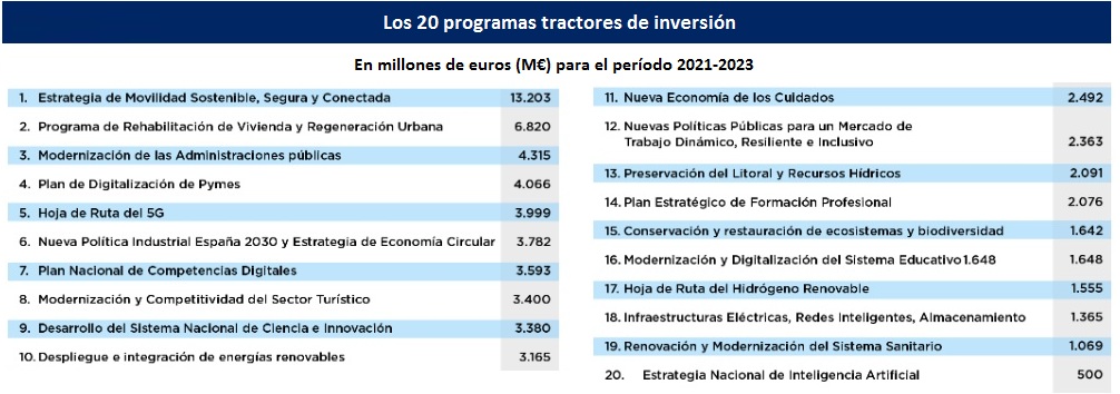 En el caso de las inversiones, el volumen movilizado será de unos 70.000 M€ en 2021-2023. El verde (39%) y el digital (29%) son los vectores dominantes. Con una apuesta clara también -ha señalado el presidente- por la educación y la formación, la I+D+i (investigación, desarrollo e innovación), la igualdad de género y la inclusión en todo el territorio.