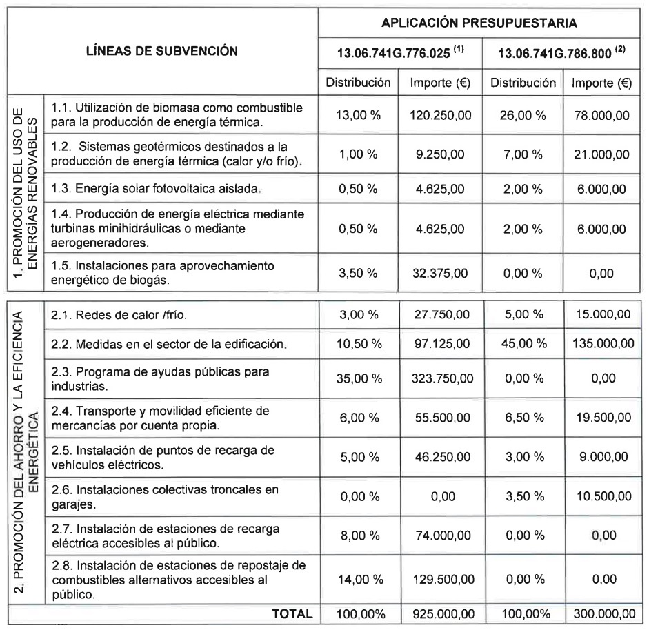 Solo la biomasa, "como combustible para la producción de energía térmica" se lleva más dinero: 198.250 euros. Las subvenciones para los "sistemas geotérmicos destinados a la producción de energía térmica (calor y/o frío)" se quedan en 30.250 euros; y la "producción de energía eléctrica mediante turbinas minihidráulicas o mediante aerogeneradores" recibirá como se dijo 10.625 euros. Sorprendentemente, el Gobierno asturiano se olvida de la cabaña ganadera de la región y apenas destina 32.375 euros al biogás, cuatro veces menos que al gas natural que importa Asturias desde Argelia o Catar (las subvenciones para instalaciones de repostaje de gas que ha previsto el Ejecutivo socialista ascienden como se dijo a casi 130.000 euros). Por fin, el Gobierno de Fernández ha presupuestado alrededor de 140.000 euros para la instalación de puntos de recarga de vehículos eléctricos. [Abajo: tabla con el reparto de recursos. Fuente: Gobierno de Asturias].